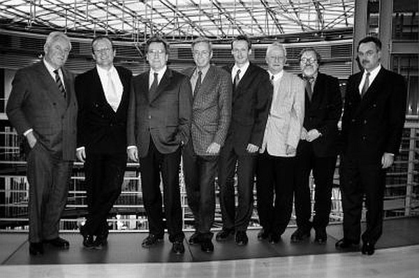 Fotos: oben: Kuratorium-Gruppenbild vom November 2000. Von links Erich Schumann, der damalige DHB-Präsident Christoph Wüterich, DSB-Präsident Manfred von Richthofen, Klaus Pannenbäcker, Dirk Wellen, Hans-Jürben Pabst, Dieter Schuermann und Wilfried Müther.