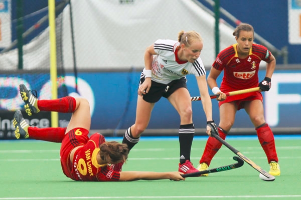 29.10.2014 - Die deutschen Damen haben das zweite Champions-Trophy-Vorbereitungsspiel in Brüssel gegen Belgien klar mit 4:0 (2:0) für sich entscheiden können. 19 Stunden nach dem 2:1 (0:0) vom Vortag zeigte das Team von Jamilon Mülders eine gute Steigerung und konnte die spielerische Überlegenheit durch Julia Müller, Pia Oldhafer, Kristina Hillmann und Hannah Krüger auch deutlich aufs Scoreboard bringen. Bis zum Wochenende will Mülders sein 18-köpfiges Team für die Champions Trophy (Mendoza, ARG, 29. November bis 7. Dezember) nominieren.