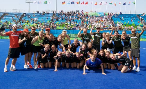 19.08.2016 - Mit einer sehr starken zweiten Halbzeit hat das deutsche Damenteam im Spiel um Platz drei in Rio die olympische Bronzemedaille gewonnen. Gegner Neuseeland hatte in Halbzeit eins mehr vom Spiel und mehr Chancen, doch mit einer großen Leistungssteigerung holten die Mülders-Schützlinge eine 2:0-Führung durch Tore von Charlotte Stapenhorst und Lisa Marie Schütze heraus. Neuseeland kam zwar noch einmal heran, aber die Abwehr um die starke Kristina Reynolds brachte die 2:1-Führung über die Zeit. Es ist nach Silber 1984 und 1992 sowie Gold 2004 die vierte Medaille einer deutschen Damenmannschaft bei Olympischen Spielen.