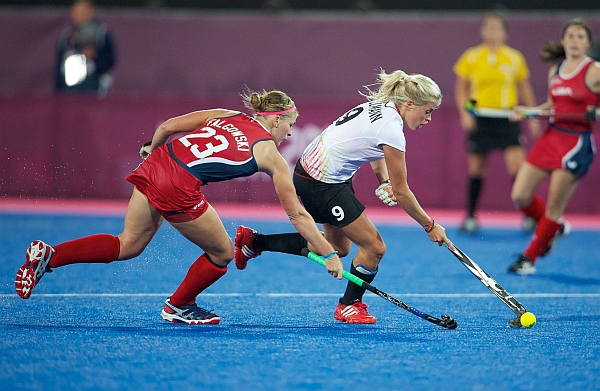 29.07.2012 - Die deutschen Hockeydamen haben ihr Auftaktmatch bei den Olympischen Spielen in London letztlich etwas glücklich mit 2:1 (2:0) gewonnen. Nachdem die DHB-Auswahl in der ersten Halbzeit das Pressing der USA stark abwehrten und viele gefährliche Konter setzten, führte sie zur Pause durch Traumtore von Fanny Rinne und Lisa Hahn 2:0. Die Abgeklärtheit fehlte nach dem Wechsel mehr und mehr. Die USA wurden durch viele Ballverluste der Deutschen stark gemacht und kamen auf 2:1 heran. Letztlich war es eine gute Abwehr um die starke Torfrau Yvonne Frank, die die drei Zähler rettete.