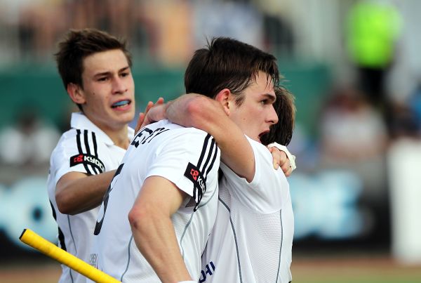 03.12.2011 - Die deutschen Herren haben das erwartet schwere Auftaktspiel bei der Champions Trophy in Neuseeland gegen die Gastgeber mit 2:1 (1:1) gewinnen können. Nachdem Thilo Stralkowski den Europameister bereits nach nicht einmal zehn Minuten in Führung gebracht hatte, konnte Hugo Inglis kurz darauf ausgleichen. Die Deutschen dominierten im ausverkauften Stadion die Partie, wurden aber erst zehn Minuten vor Schluss durch ein Stechertor von Christopher Wesley zum 2:1-Siegtreffer belohnt. Die Niederländer, am Sonntag zweiter Gegner der Weise-Truppe, siegten in ihrem ersten Spiel dieser Gruppe mit 2:0 (1:0) gegen Korea.