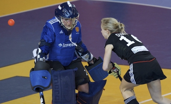 25.01.2014 - Die deutschen Hockeydamen haben das letzte Gruppenspiel bei der Hallen-Europameisterschaft in Prag gegen England mit 5:3 (2:1) gewonnen und sind damit ins Halbfinale eingezogen. Lydia Haase war mit drei Toren beste Schützin des DHB-Teams, für das Kristina Hillmann und Lena Jacobi die weiteren Tore beisteuerten. Es war ein Arbeitssieg der Deutschen, die sich mit der defensiven Spielweise der Engländerinnen schwer taten, aber insgesamt aufgrund der deutlich höheren Spielanteile ein verdienter Erfolg. Im Halbfinale wartet nun vermutlich um 17.50 Uhr Österreich, es sei denn im bevorstehenden letzten Gruppenspiel verlören die Niederländerinnen mit mehr als drei Toren gegen Tschechien. Nur dann würde das DHB-Team noch auf Platz eins rutschen und im Halbfinale um 19.15 Uhr auf Polen treffen.