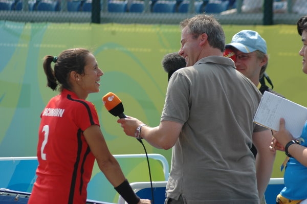 Natascha Keller: „Das war natürlich ein Nervenspiel. Aber wir mögen solche Matches lieber, als wenn wir wissen, dass es noch zwei Chancen gibt. Wir haben gezeigt, dass wir ein tolles Team sind. Ich habe richtig Gänsehaut, weil ich es so großartig finde, dass wir so früh und ohne fremde Hilfe ins Halbfinale eingezogen sind – das ist so ungewohnt!“