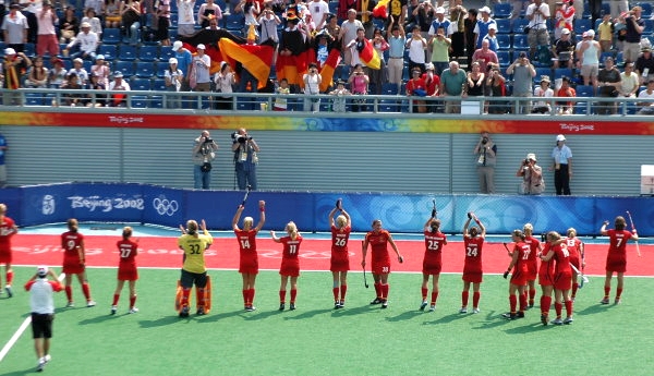 Die deutschen Damen haben mit einem 1:0-Sieg (0:0) über Japan als Gruppensieger der Vorrundengruppe B das Halbfinale der Olympischen Spiele erreicht. Janine Beermann erzielte das goldene Tor zu Beginn der zweiten Halbzeit. Deutschland musste auf die angeschlagene Abwehrchefin Tina Bachmann verzichten, die die Nacht über mit Magenproblemen zu kämpfen hatte aber von Julia Müller exzellent ersetzt wurde, und beherrschte die Partie nahezu über die gesamte Spielzeit. Einziges Manko war das Spiel am und im gegnerischen Kreis, wo zu viele gute Gelegenheiten etwas hektisch vergeben wurden. Der Gegner im Halbfinale wird am Abend im direkten Duell der Gruppe A zwischen China und Australien ausgespielt.